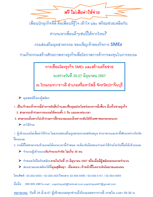 การฝึกอบรมโครงการหลักสูตรกิจกรรมเชื่อมโยง SMEs และสร้างเครือข่าย